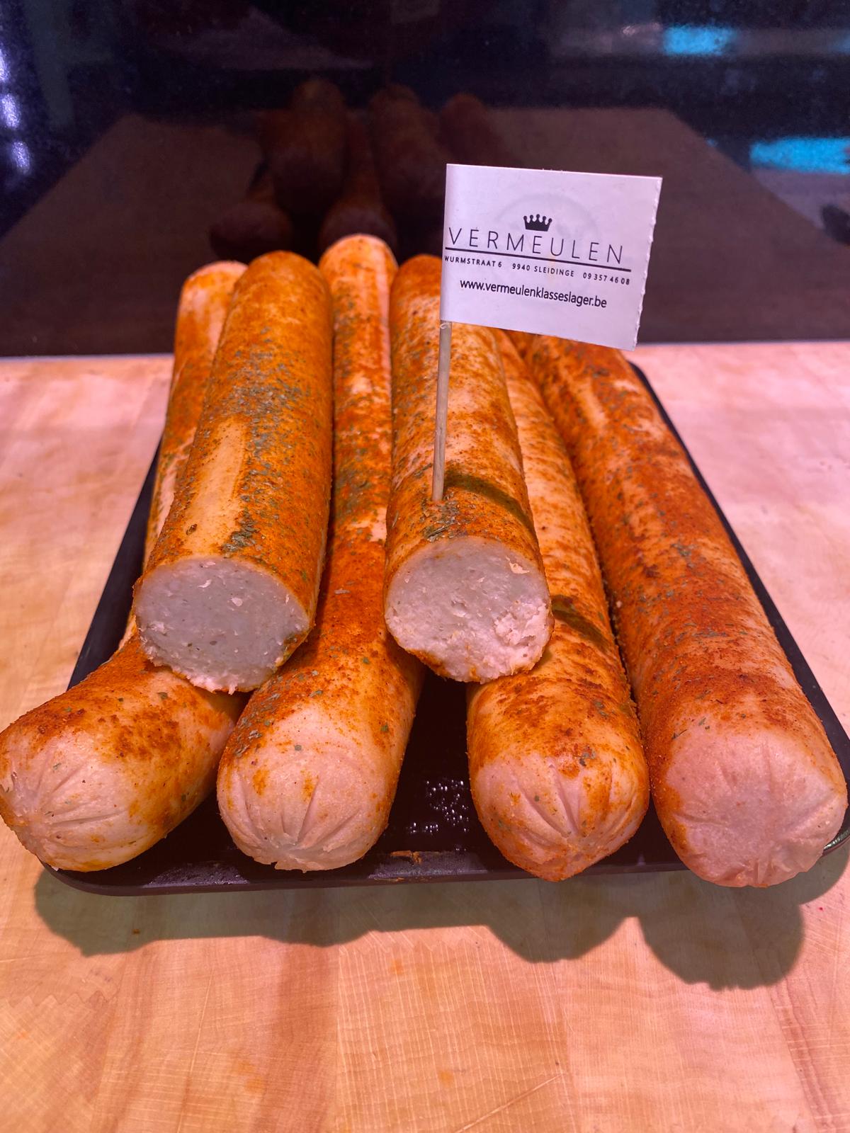 Gemaakt van kippenvlees, op smaak gebracht met eigen kruidenboeket en afgebakken met rode kruiden. Dit alles maakt van deze kippengrillworst een uniek product voor alle gelegenheden, zowel koud als warm, in de pan of op de barbecue, tussen een broodje of met frietjes. Heerlijk !